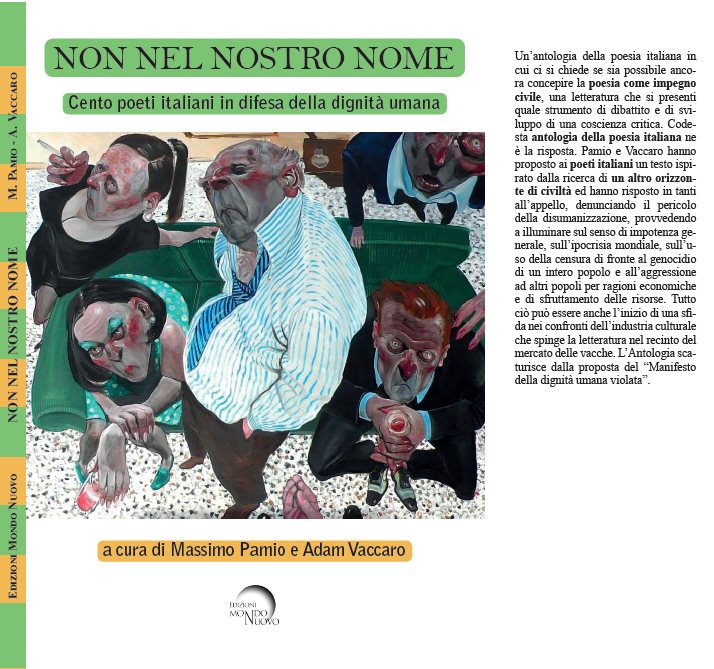 2 Novembre 2025 - NON NEL NOSTRO NOME La Redazione Miloanocosa comunica con piacere l'uscita dell'Antologia Non nel nostro Nome - Ed. Mondo Nuovo - Cento poeti italiani in difesa della dignità umana A cura di Massimo Pamio e Adam Vaccaro *** Voci che, nella complessità delle teste imperialistiche dello scenario internazionale attuale, ritengono di esprimere un pensiero critico libero da sudditanze ideologiche di opposte propagande. Voci per le quali la dignità primaria è di non farsi ridurre a tifosi dell'una o dell'altra fonte degli orrori cui assistiamo. ----------------------------------------------------------------------- Hanno contribuito: Elio Pecora e Lorenzo Perilli Gli Autori: Airaghi, Allegrini, Alleva, Alvino, Angiuli, Attanasio, Azzola, Baroni M. C., Baroni S., Bertoni, Bisutti, Cabianca, Calista, Campi, Candiani, Caniato, Cannillo, Cantelmo, Carle, Carpi, Carrera, Cavalera, Cavalli, Cavicchia, Cellotto, Cinà, Coco, Cohen, Conte G., Conte V., Curci, D’Agostino, Daino, Dalessandro, D’Alonzo, Damaggio, Davoli, De Girolamo, Demi, De Napoli, De Santis, Di Cicco, Di Domenico, Di Gregorio, Di Lisio, Di Mineo, Di Pietro, Doria, Farina, Ferramosca, Ferraresso, Ferrari, Fo, Franzin, Frisa, Gabotto, Gabriele, Gaccione, Gallo, Galzio, Gera, Ghenzovich, Giancarli, Granatiero, Guarracino, Guidetti, Guzzi, Iacovella, Ingranata, Jatosti, Langella, Lombardo, Macario, Macciò, Maffia, Magrelli, Mangili, Marciani, Marianacci, Mastropasqua, Mastropirro, Mazzarella, Memmo, Moio, Mori, Oldani, Pacilio, Palladini, Panetta, Parrelli, Passarello, Pecchiari, Pecora, Perilli, Piccoli, Piccolo, Pozzoni, Prinzhofer, Quintavalla, Raimondi, Ravizza, Rizzi, Rosato, Rossani, Ruffilli, Sassetto, Segneri, Sella, Sibilio, Sica, Simeone, Sinicco, Šmitran, Spagnuolo, Tabellione, Tamburini, Tarozzi, Tognolini, Tonelli, Veronesi, Vitagliano, Vitale, Voce. ![]() Lascia un commento... |